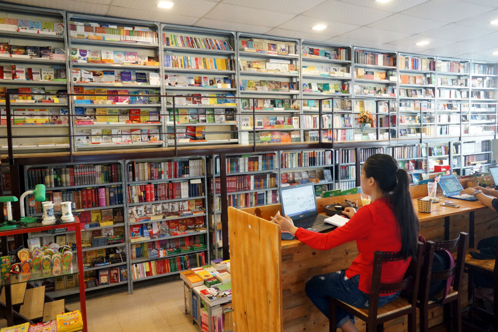 Cafe sách Đông tây với không gian yên tĩnh, thoải mái cho du khách tìm đến đọc sách và thưởng thức cafe ngon