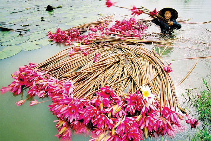 Những hồ sen rực rỡ ở khu bảo tồn đất ngập nước Láng Sen mùa nước nổi