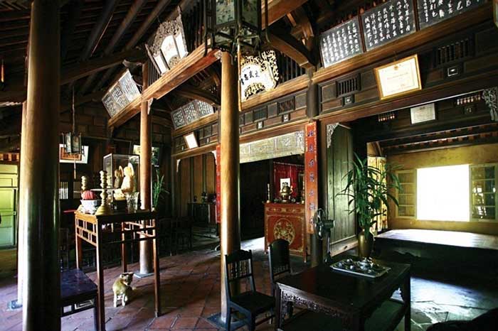 Bên trong ngôi nhà được phân chia rõ ràng theo từng gian phòng khác nhau. Gian ở giữa là gian chính, dùng làm nơi thờ cúng với nguyên tắc bài trí là “tiền Phật hậu linh”, nghĩa là thờ Phật phía trước, thờ tổ tiên phía sau.