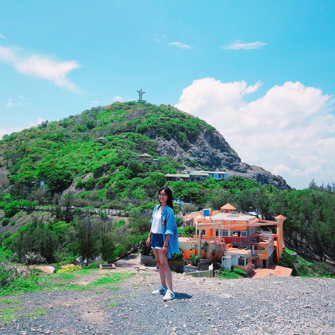 Chụp ảnh cùng tượng chúa Kito dang tay tại Mũi Nghinh Phong Vũng Tàu