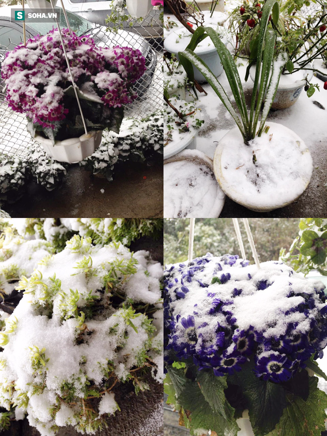 Những bông hoa phủ băng tuyết trông rất thú vị. Ảnh: Hoàng Nam.