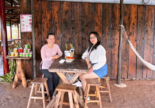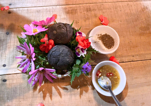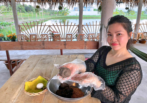 Một ngày làm nhà quê thứ thiệt. Tự tay làm bánh, vò lá sâm, nhâm nhi mật hoa bần, rồi quây quần bên mâm cơm quê với nguyên liệu trồng tại vườn, canh tác tự nhiên không hóa chất.