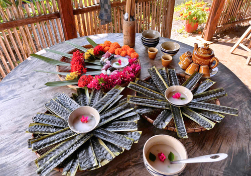 - Quý khách cùng cô Ba làm bánh lá mơ truyền thống. Sau đó, thưởng thức ngay mẹt bánh nóng hổi được hấp bếp củi chấm nước cốt dừa béo đậm – hương vị khó quên của cái ngon không cầu kỳ trên đất cù lao.