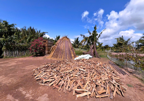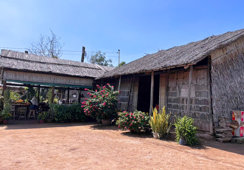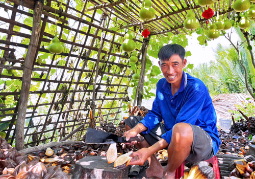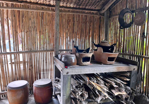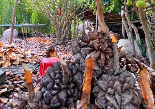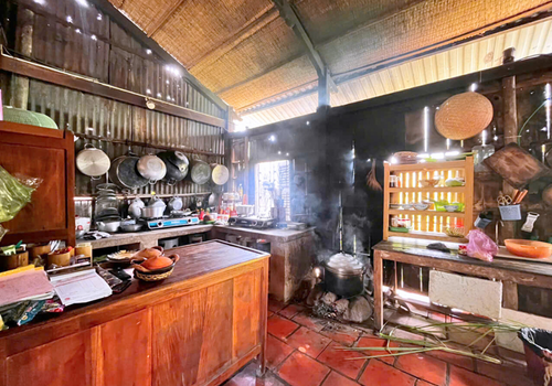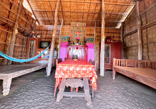 - Đặc biệt, nhà Cô Ba Sữa vẫn giữ nguyên nét xưa với mái lá chằm và nền đất nện vảy rồng độc đáo. Vừa bước qua cửa, du khách đã cảm nhận ngay sự mát lành, thông thoáng rất riêng của nếp nhà truyền thống Nam Bộ.