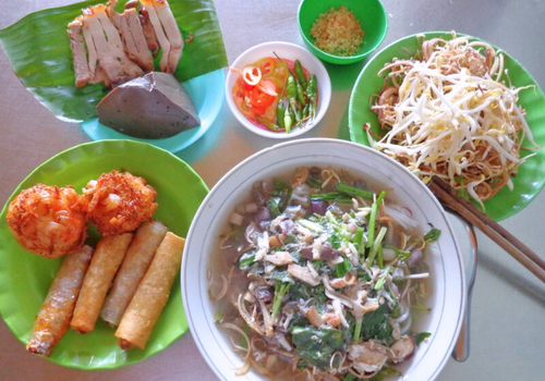 - Đến Trà Vinh, bắt đầu ngày mới với tô bún nước lèo ấm nóng, sợi bún thơm nồng mùi sả và ngải bún, quyện cùng miếng heo quay giòn rụm bên sấp rau chuối tươi ăn cực kỳ “bắt miệng”. Nếu ngại vị mắm, các món hủ tiếu, bánh canh hay món chay thanh đạm cũng luôn sẵn sàng phục vụ Quý Khách.