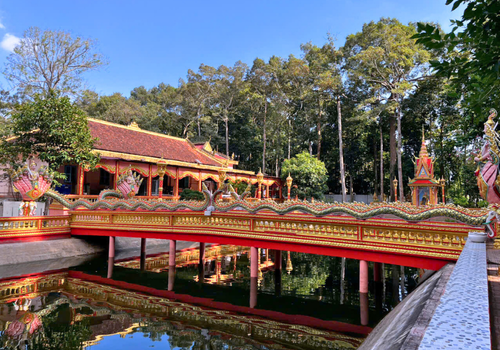 Chùa Âng khép lại hành trình tham quan – ngôi chùa cổ nhất tại Trà Vinh, mang dấu ấn kiến trúc truyền thống chịu ảnh hưởng văn hóa Angkor với những mái chùa uốn cong tinh xảo. Sắc vàng cổ kính ẩn hiện dưới sắc xanh cổ thụ, tạo nên vẻ đẹp vừa uy nghiêm vừa gần gũi. Giữa không gian tĩnh tại, Quý khách có dịp cảm nhận nét văn hóa tâm linh đặc trưng của Phật giáo Nam Tông nơi đây.