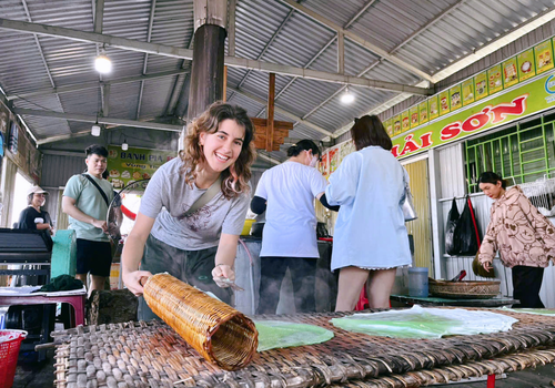 Tiếp tục hành trình Quý khách đến Lò bánh tráng, hủ tiếu. Tại đây, Quý khách được tận mắt nhìn thấy quy trình người dân làm bánh tráng, hủ tiếu, được trải nghiệm tự tay làm một công đoạn nào đó mà mình thấy thích.